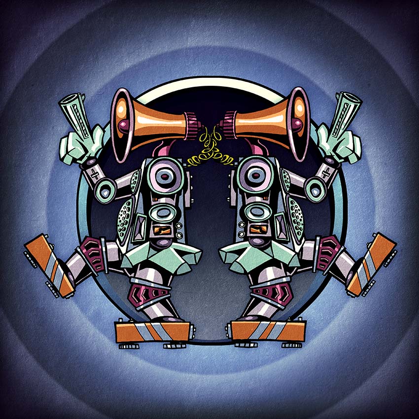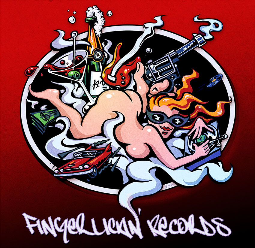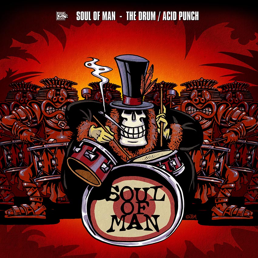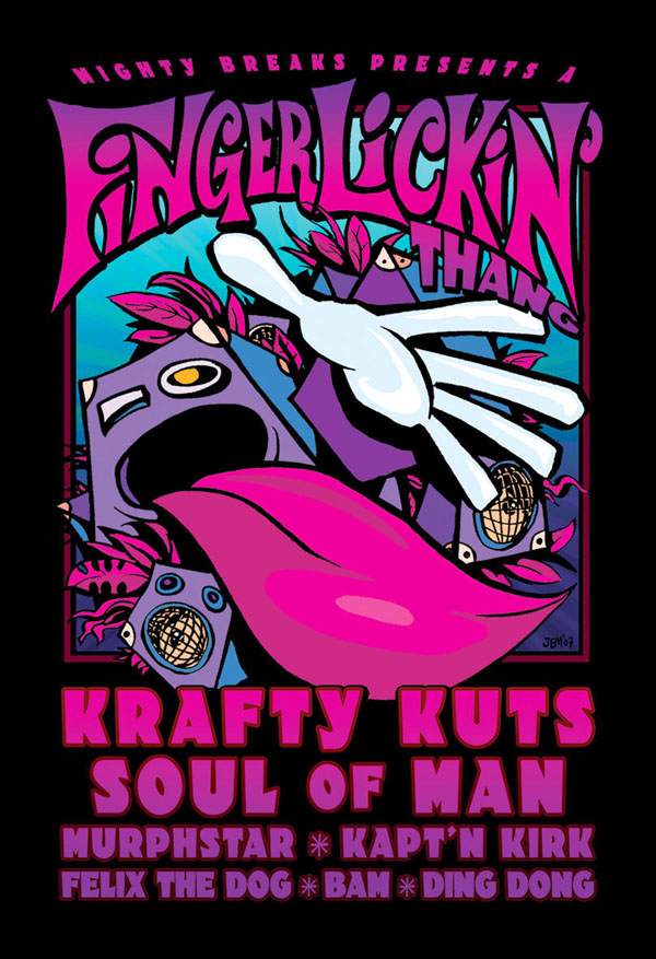 Almost all of the iconic artwork for Finger Lickin’ Records is created by label co-founder and one half of Soul of Man, Jem Panufnik. You can see more of his record sleeves, gig posters and logos on his website. You can also find a selection of prints, posters and merch here.